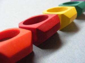 Do you have to be a kid to appreciate and love these rad crayon rings by Etsy seller Oh My Lucky Stars? I think not! I’m dying to wear one of these. What will I be doing next time I’m bored inline at the bank or DMV, or waiting for the oil in my car to get changed? COLOR with my crayon ring!