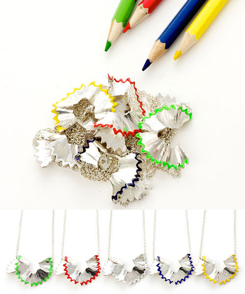 That’s why I loved these Pencil Shavings Necklace so much. How ingenious and brightly suggestive of a love of the simplest writing utensil to grace the page. I’d wear one around my neck with pencil-pride!